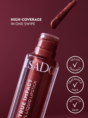 IsaDora’s new TRUE IMPACT Matte Liquid Lipstick delivers full-pigment color in a single stroke, setting to a soft-matte finish that looks modern and refined.